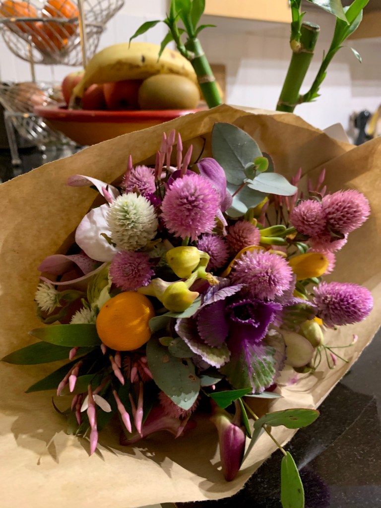 And this is the little posy I bought for my friend Sheila who lives in a nursing home. If you live in Sydney it’s worth a visit.