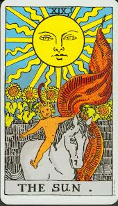 The sun is shining brightly indicating happiness and growth, and the 12 flamed tree behind our man indicates the 12 zodiac signs and his greatest desire for passion and sex.